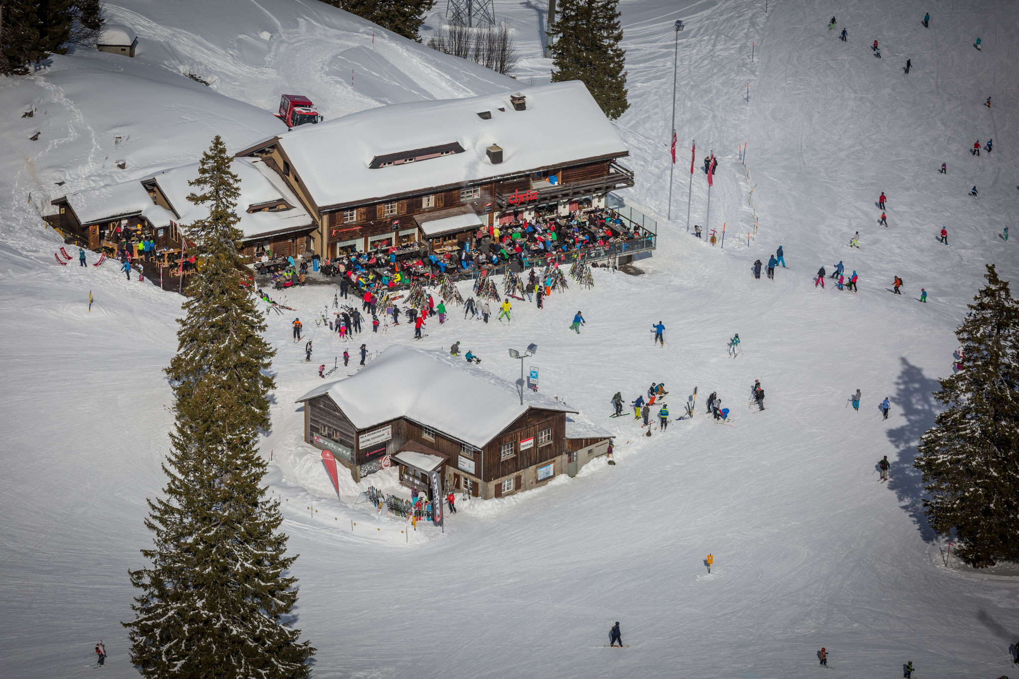 In altem Holz gestaltet, bietet Ihnen das Bergrestaurant Chrüz eine gemütliche, rustikale und heimelige Atmosphäre. Gerne verwöhnen wir Sie in unserem bedienten Bergrestaurant mit regionalen Produkten und einheimischen Gerichten.